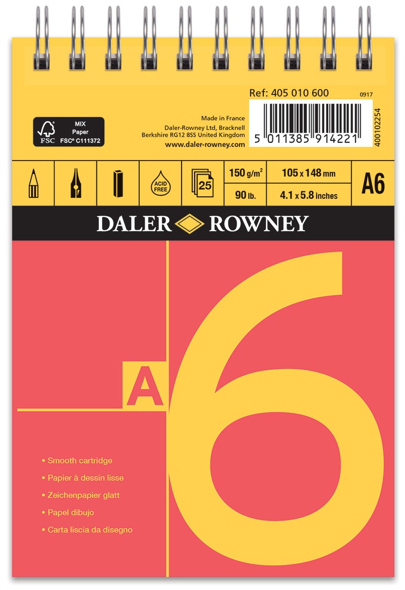 Daler Rowney Red & Yellow Spiral Sketch Pad A6 150gsm - 25 Page