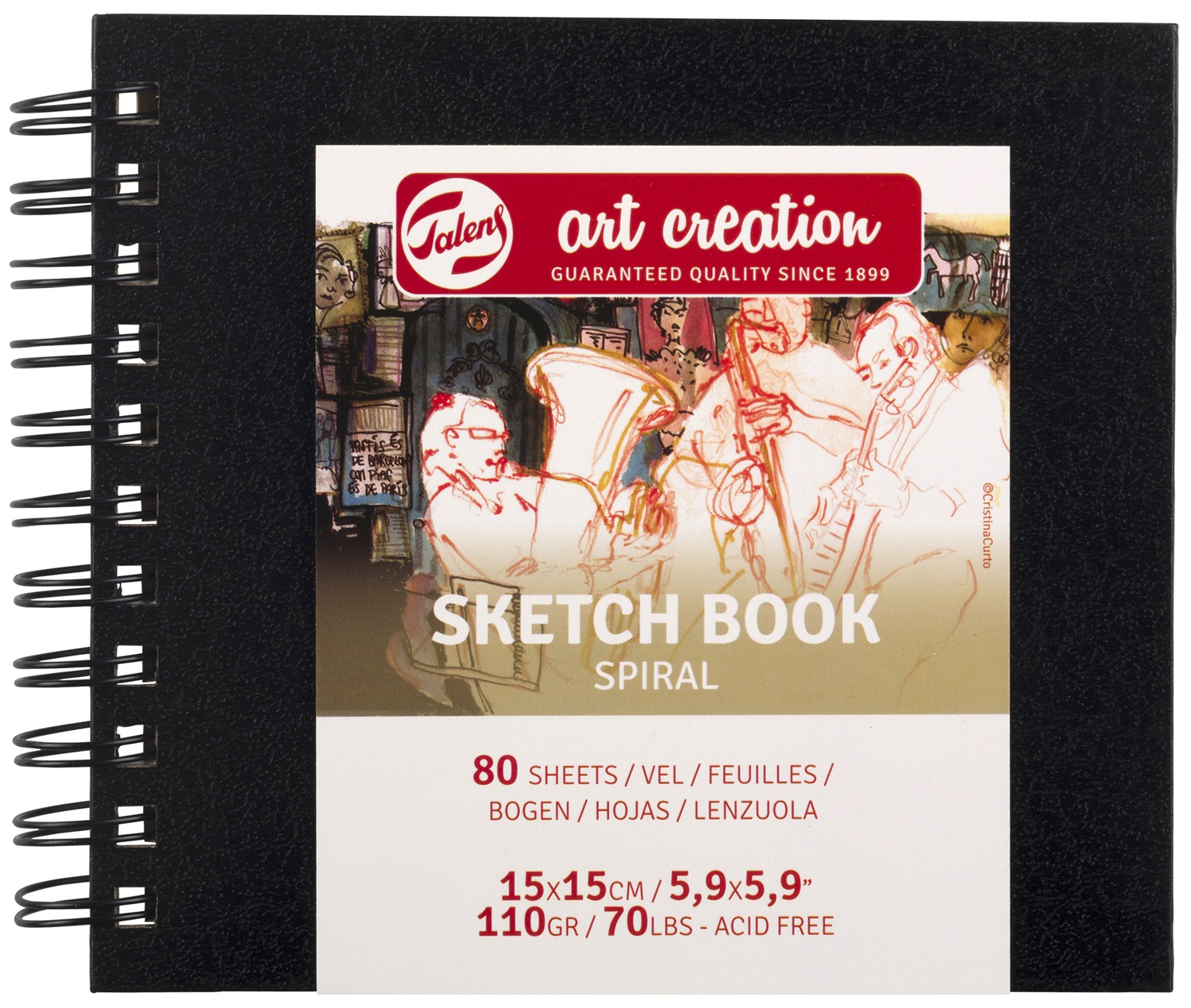 Talens Art Creation sketchbooks are sturdy, hard-cover sketchbooks perfect for drawing, journaling, urban sketching, field studies and more! These spiral-bound sketchbooks are ideal for use with pencil, pastel, ink and charcoal. They contain 80 sheets of acid-free, 110 g/m² (70 lbs) paper and are available in multiple sizes so you can find the perfect sketchbook for your needs.