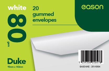 Eason 20 Pack Duke White Gummed Envelopes