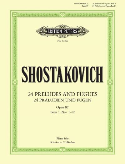 - In 1950 Dmitri Shostakovich travelled to Leipzig to judge a piano competition held to commemorate the 200th anniversary of J.S. Bach's death. One of the contestents, Tatiana Nikolayeva, came prepared to perform any one of Bach's 48 Preludes and Fugues from the Well-Tempered Clavier upon request. She went on to win the Gold Medal. The following year, Shostakovich completed his own set of 24 Preludes and Fugues, one in each key, dedicated to Nikolayeva. Volume 1 of the classic edition of this twentieth century solo piano masterpiece, contains Preludes and Fugues Op. 87 Nos. 1-12. 1950 reiste Dmitri Schostakowitsch nach Leipzig, um einen Klavierwettbewerb zum 200. Todestag von J.S. Bach beizuwohnen. Eine der Wettbewerbsteilnehmerinnen, Tatiana Nikolayeva, war in der Lage, auf Ansage jedes der 48 Präludien und Fugen aus dem Wohltemperierten Klavier von Bach zu spielen. Sie gewann daraufhin die Goldmedaille. Im darauf folgenden Jahr vollendete Schostakowitsch seine eigene Reihe von 24 Präludien und Fugen in allen Tonarten, die er Nikolajewa widmete. Der erste Band der Ausgabe dieses Meisterwerks des 20. Jahrhunderts enthält die Präludien und Fugen op. 87 Nr. 1-12.