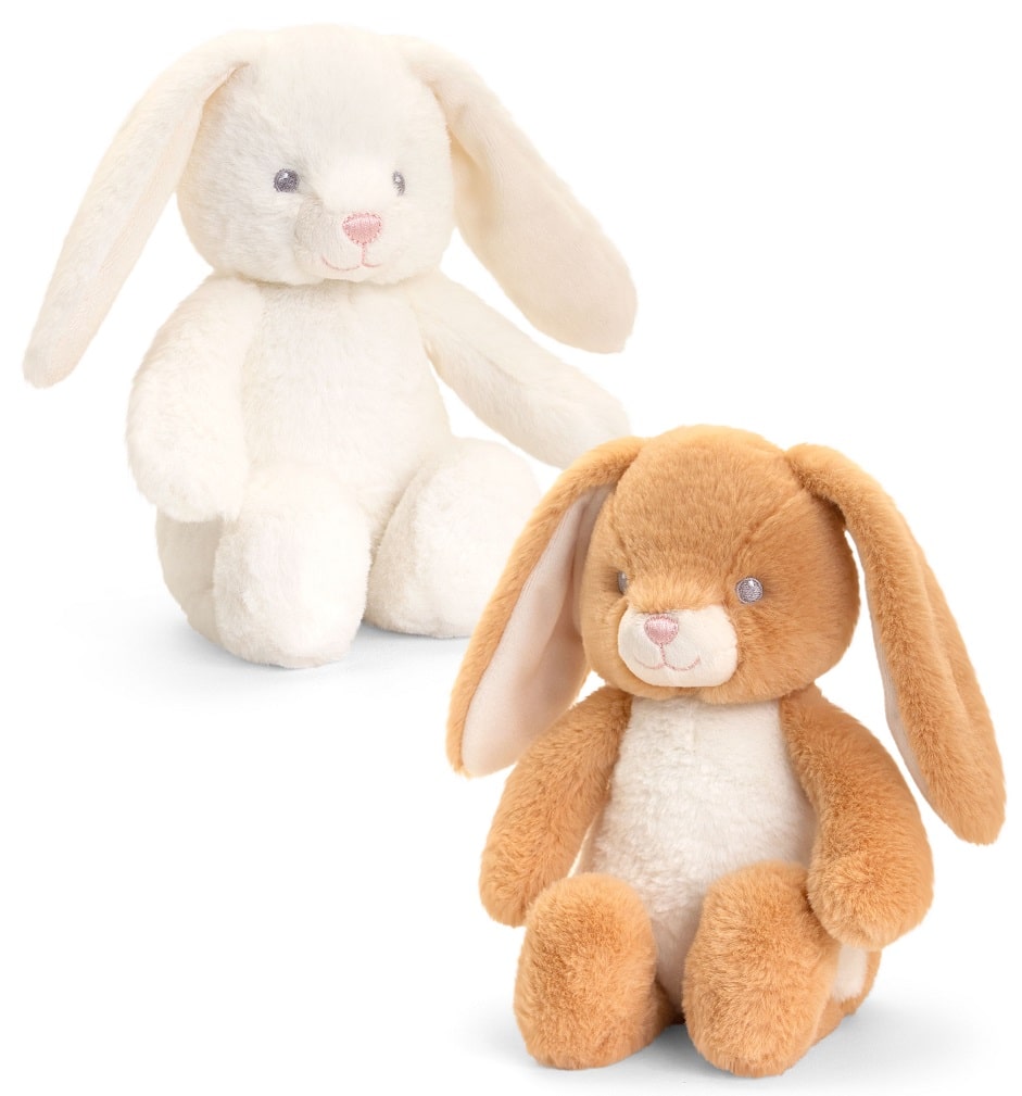 Adorable 25cm tall Keeleco Baby Rabbits. Made from 100% recycled materials, this eco-friendly friend is perfect for cuddling and playtime.