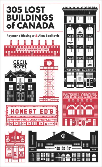 - Winner, AIGA 50 Books 50 Covers Second Prize Winner, Alcuin Society Book Design Awards (Prose Illustrated) A National Bestseller The legacies of theaters, hotels, fire stations, flour mills, and more - torn down, burned down, and otherwise lost - are uncovered in this bittersweet collection. Using archival photographs, blueprints, and written reports, Raymond Biesinger has rendered a selection of Canada's most iconic lost buildings in his signature minimalist style. Accompanying Biesinger's illustrations are Alex Bozikovic's descriptions which capture each building's historical, cultural, and architectural significance. Bozikovic draws on local histories, archived building permits and his own extensive knowledge of the Canadian urban architectural landscape and its history - from the letters passed through Kelowna's unlikely art deco post office to the destruction of a home in Halifax's Africville - to offer fascinating, sometimes forgotten stories about each building and its significance. An impossible architectural walking tour, 305 Lost Buildings of Canada spans the country, its cities and countryside, and its history. Cities change, buildings come and go, but in this fact-filed compendium, you'll find the lost wonders of Canada's architecture.