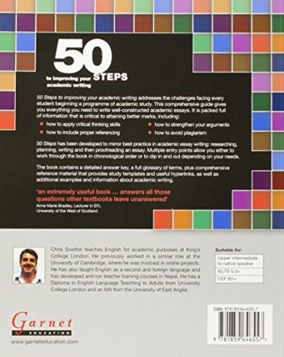 - 50 Steps to Improving Your Academic Writing 50 Steps to Improving Your Academic Writing addresses the challenges facing every student beginning a program of academic study. This comprehensive guide gives you everything you need to write well-constructed academic essays. It is packed full of information that is critical to attaining better marks, including: how to apply critical thinking skills how to strengthen your arguments how to include paper referencing how to avoid plagiarism 50 Steps has been developed to mirror best practice in academic essay writing: researching, planning, writing and then proofreading an essay. Multiple entry points allow you either to work through the book in chronological order or to dip in and out depending on your needs. The book contains a detailed answer key, a full glossary of terms, plus comprehensive reference material that provides study templates and useful hyperlinks, as well as additional examples and information about academic writing. Chris Sowton, author of 50 Steps to Improving Your Academic Writing, answers your essay-writing questions here!
