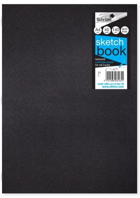 Silvine 40 page A4 field sketch book. Made from 140gsm textured white cartridge paper with durable gloss laminated covers. Suitable for all media.