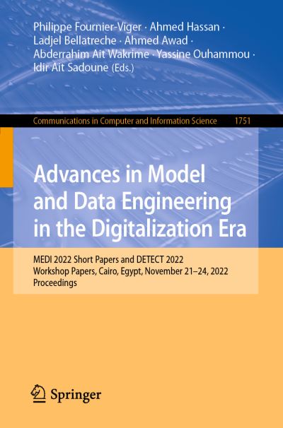 - This volume constitutes short papers and DETECT 2022 workshop papers, presented during the 11th International Conference on Model and Data Engineering, MEDI 2022, held in Cairo, Egypt, in November 2022. The 11 short papers presented were selected from the total of 65 submissions. This volume also contains the 4 accepted papers from the DETECT 2022 workshop, held at MEDI 2022. The volume focuses on advances in data management and modelling, including topics such as data models, data processing, database theory, database systems technology, and advanced database applications.