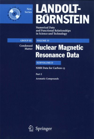 - Nuclear Magnetic Resonance (NMR) is based on the fact that certain nuclei exhibit a magnetic moment, orient by a magnetic field, and absorb characteristic frequencies in the radiofrequency part of the spectrum. The spectral lines of the nuclei are highly influenced by the chemical environment i.e. the structure and interaction of the molecules. NMR is now the leading technique and a powerful tool for the investigation of the structure and interaction of molecules. The present Landolt-Börnstein volume III/35 Nuclear Magnetic Resonance (NMR) Data is therefore of major interest to all scientists and engineers who intend to use NMR to study the structure and the binding of molecules. Volume III/35 "NMR-Data" is divided into several subvolumes and parts. Subvolume III/35A contains the nuclei 11B and 31P, subvolume III/35B contains the nuclei 19F and 15N, subvolume III/35C contains the nucleus 1H, subvolume III/35D contains the nucleus 13C, subvolume III/35E contains the nucleus 17O, andsubvolume III/35G contains the nucleus 77Se. More nuclei will be presented later.