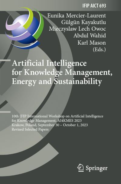 - This volume IFIP AICT 693 constitutes the refereed proceedings of the 10th IFIP International Workshop on Artificial Intelligence for Knowledge Management, AI4KMES 2023, from September 30th - October 1st, 2023, held in Krakow, Poland. The 15 full papers presented together with 2 short papers were carefully reviewed and selected from 49 submissions. The accepted papers covered a large scope of topics related to sustainability in various contexts such as smart cities, agriculture, energy and gas production and distribution, industry, management and biodiversity.