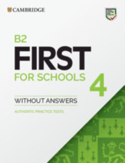 - B2 First for Schools 4 authentic examination papers provide perfect practice because they are exactly like the real exam. Inside B2 First for Schools 4 you'll find four complete examination papers from Cambridge Assessment English. Be confident on exam day by working through each part of the exam so you can familiarise yourself with the format and practise your exam technique. This book does not contain the audio recordings, answer keys, sample Writing answers or Speaking test scripts. A Student's Book with answers with Audio with Resource Bank is available separately.