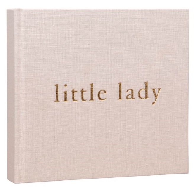 The blush pink linen cover features a woven finish, complete with ‘Little Lady’ decal in gold, foil stamped lettering. Inside is space for fifty photographs, complete with blank space for annotations and personalised front page.