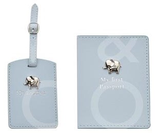 A passport holder and luggage tag set from BAMBINO BY JULIANA®. This desirable travel set will add to the excitement of holidaying for little ones. The leatherette set consists of a passport holder and matching luggage tag with baby blue colouring. Each item features a solid silver metal elephant for decoration, completed by ‘My Luggage’ and ‘My First Passport’ in complementary silver lettering. The set is packaged in a luxury lidded gift box.