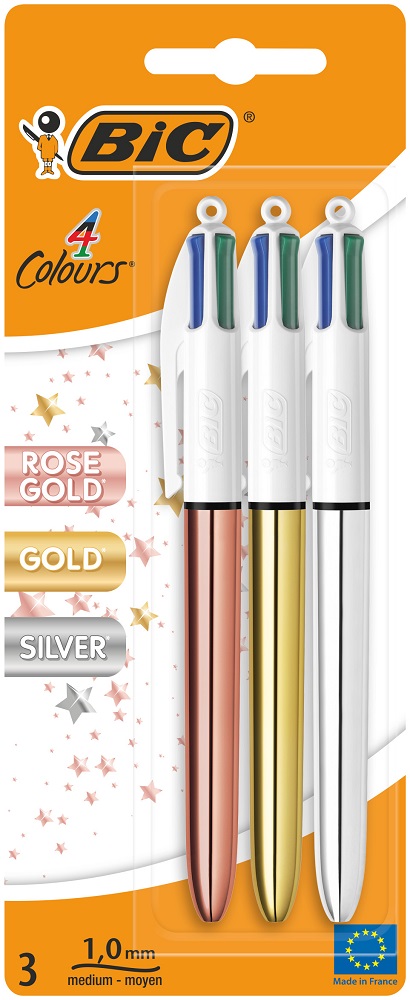 BIC 4 Colour Mixed Metallic Blister 3 pack