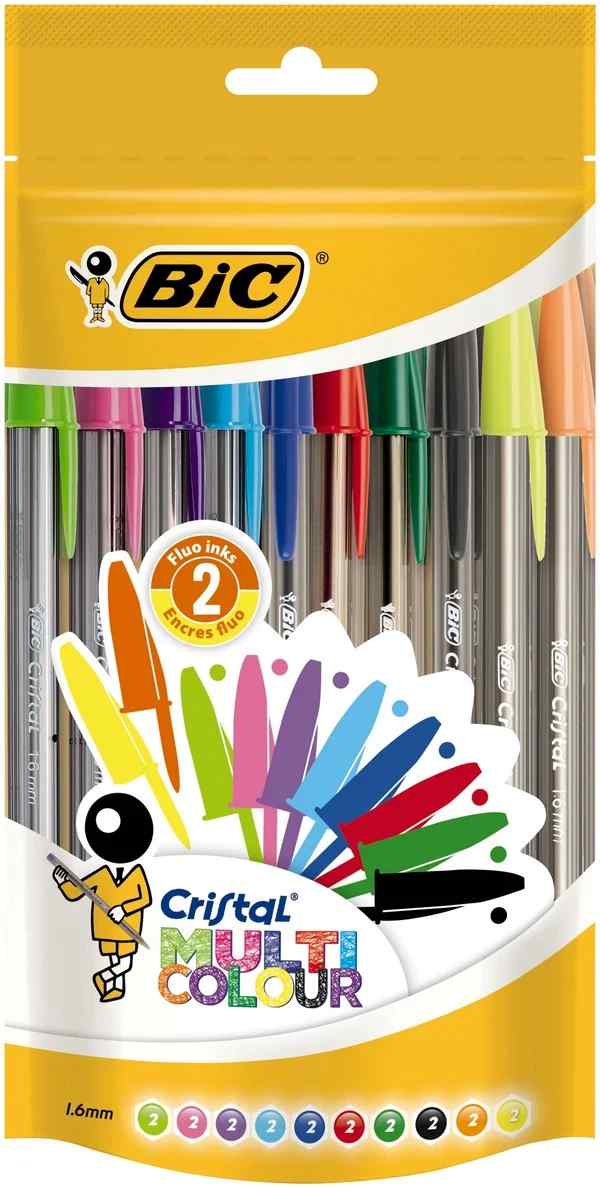 This BIC Cristal Multicolour pack of 20 ball pens has 8 vibrant colours and 2 fluorescents - a colourful cocktail for your notes.