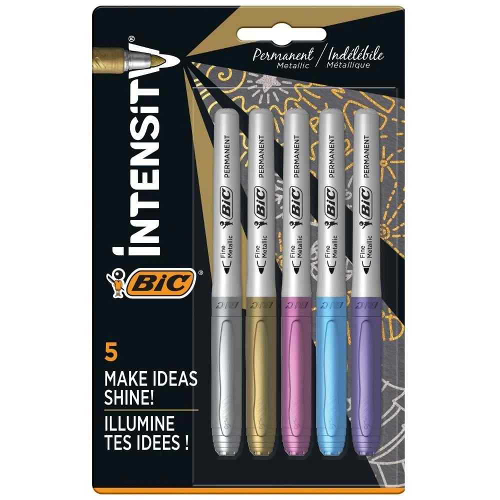 BIC Intensity Metallic Permanent Markers with Bullet Nib for Light and Dark Porous Surfaces - Assorted Colours, Pack of 5