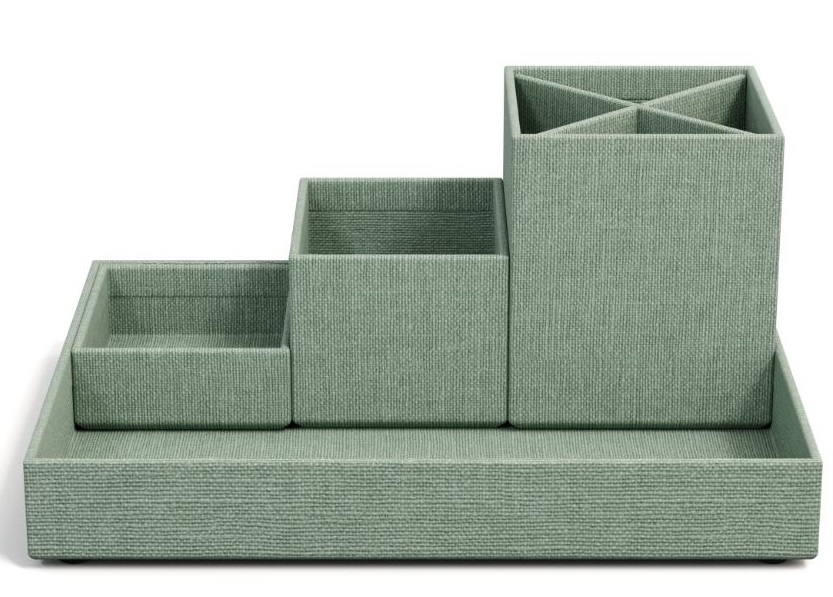 Flexible desktop organizer with 4 separate organizing pieces. Unclutter your workspace by keeping pencils, rulers, scissors, paper clips, erasers and other small items on the desk. The tray is equipped with rubber feet to keep it stable and steady. Use the trays together as a set or separately where you need to keep small items in order.
