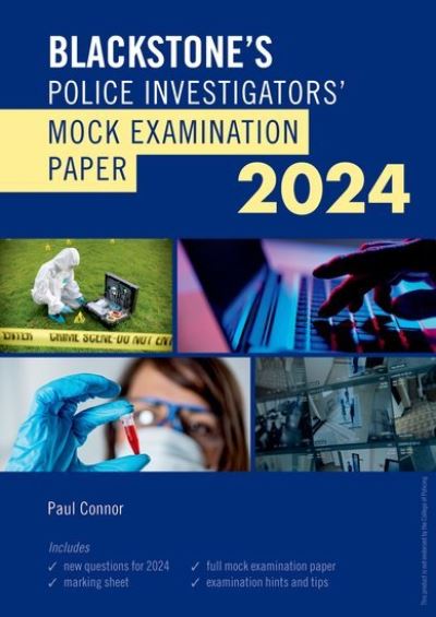 - Blackstone's Police Investigators' Mock Examination Paper 2024 helps you prepare for your NIE multiple-choice examination, with 80 exclusive questions taken from across the syllabus and fully referenced to the Blackstone's Police Investigators' Manual 2024. Split into two handy sections, the paper contains the mock exam booklet and answer sheet, and a second, sealed pack containing the answers and detailed marking matrix. Matching the only format of questions you will see in NIE examinations (Type A), the two hour time limit helps you gauge your revision progress and practise your exam technique. Once the exam is completed, the answers are provided with full explanations not only of the correct response but also with details of why the other responses were incorrect, and these are referenced back to the officially endorsed Blackstone's Police Investigators' Manual 2024. The paper tests you on all areas of the official syllabus found in the Manual and includes verification questions to simulate exact examination conditions. Updates for the 2024 syllabus include a full revision of question layout and over 20 new questions, covering key revisions to PACE Codes C, E, and F, and significant case law decisions. Blackstone's Police Investigators' Mock Examination Paper 2024 can offer a comprehensive and evidence-based assessment of your exam preparedness, and help you plan to avoid unnecessary pitfalls. This product is not endorsed by the College of Policing.