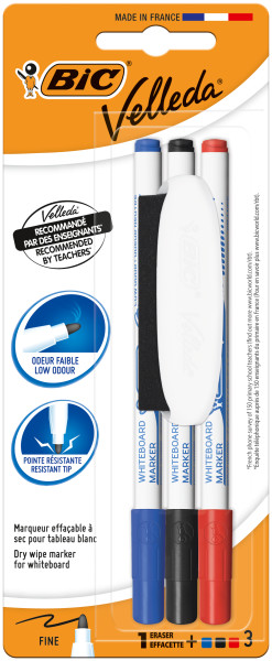 Bic Velleda Whiteboard Markers & 1 Eraser Assorted Pack of 3