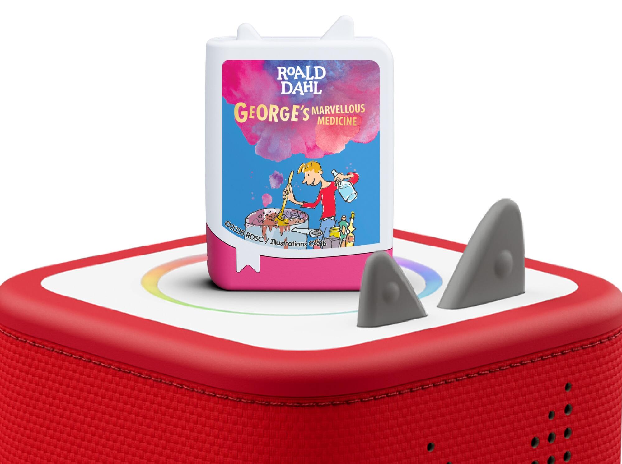 All Tonies contain magnets. Please keep them away from medical components such as defibrillators, shunts, or pacemakers as well as from products sensitive to magnets such as magnetic data carriers, credit cards, or computers.When George decides to teach his horrid grandma a lesson, he cooks up a potion like no other. What follows is a wildly funny adventure full of chaos, tricks and surprises.George has had quite enough of his grumpy, demanding grandma. Instead of giving her the usual medicine, he decides to mix up a concoction of his own—using everything he can find around the house and farm. The result? A marvellous potion that’s whizz-popping, whoosh-banging and completely out of control! Packed with Roald Dahl’s signature dark humour, this classic tale will have children giggling from start to finish. All they need to do is pop this explosive Tonie on top of the Toniebox.