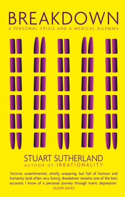 - This acclaimed account by author of the bestselling author of Irrationailty of his own manic depression remains unique in its honesty and perception. As an eminent psychologist who suffered a severe mental breaskdown. Stuart Sutherland was ideally placed to provide an original and insightful description of his illness and often bizarre consequences. In the second part of Breakdown, Sutherland describes and assesses the various forms of therapy and drug treatments available to sufferers of manic depression and analyses the origins of mental illness. Essentail reading for anyone affected by or interested in mental illness.