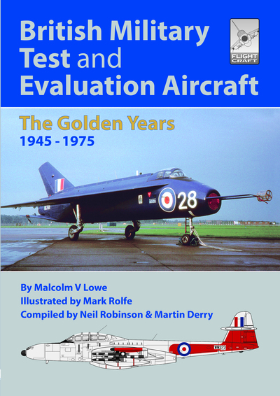 - It could be argued that the heyday of British military aircraft flight testing began in the 1940s, and continued throughout the three decades that followed, during the so-called Cold War period, and as such, the authors have purposely chosen the first 30 years, The Golden Years, 1945 to 1975, from the end of World War Two until the mid-1970s, as this was arguably the most exciting period with many wonderful and new types rubbing shoulders with wartime and immediate post-war designs that were utilised for development purposes, making for an eclectic mix of shapes and colour schemes. Alongside the technical aspects of military testing and development, are the many and varied colour schemes and markings carried by the aircraft themselves - not only by the brand-new experimental designs, but by existing production machines, suitably modified, to greater or lesser degrees, to develop the technical advances in systems and weaponry. Scores of different aircraft types are covered in _British Military Test & Evaluation Aircraft The Golden Years 1945 - 1975_, with over 65 rarely seen contemporary photographs from private collections, and, differing slightly from previous _Flight Craft_ book formats, over 50 pages of specially commissioned full colour profiles and plan views, visually chronicling the diverse range of colour schemes and markings applied to these fascinating aeroplanes. Compiled by Neil Robinson and Martin Derry, who have authored several other _Flight Craft_ books, with informative background text by well known aviation historian Malcolm V Lowe and superbly executed illustrations by Mark Rolfe. As with other books in the _Flight Craft_ series, although published with aircraft modellers in mind, it is hoped that most aviation enthusiasts will find something of interest here too.