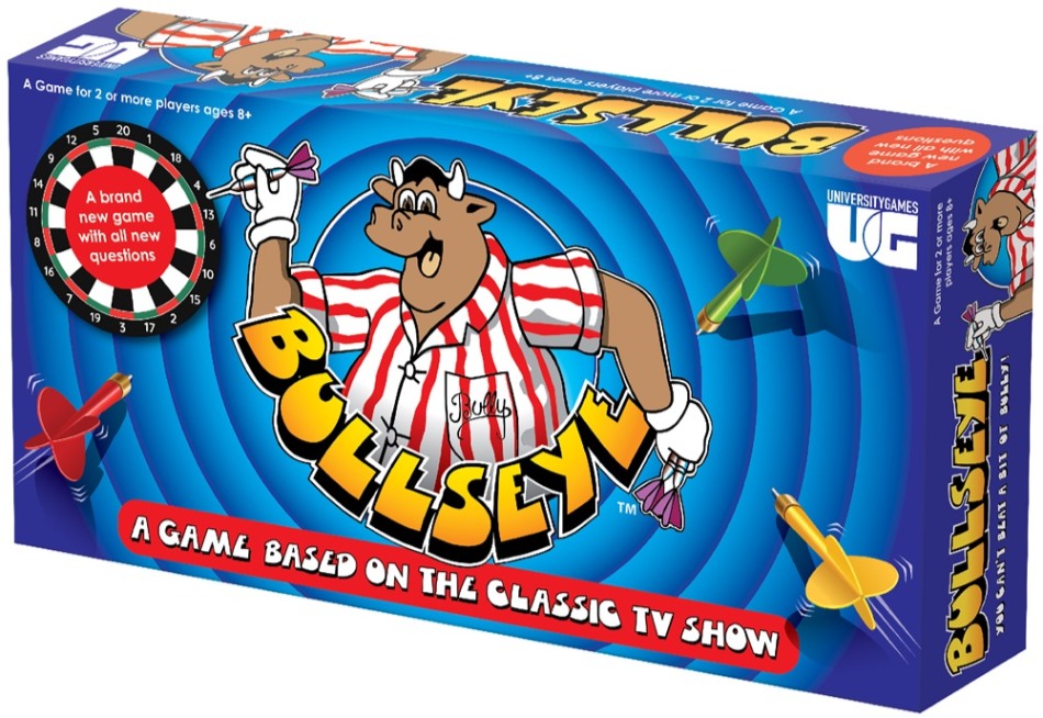Step right up to this thrilling board game adaptation of the beloved classic TV show Bullseye! Perfect for game nights with family and friends, this fun-packed game brings all the excitement of the original quiz show to your living room. Players can test their knowledge across multiple categories including Science, Sport, Spelling, Music, Films and TV, Places, Books, Words, and History. The game features a dartboard with magnetic darts and hundreds of challenging questions that will keep everyone engaged. Designed for 2-8 players aged 8 and above, you'll progress through exciting rounds towards the grand finale where Bully's Star Prize awaits the champion. The game includes all the iconic elements fans will remember, packaged in a vibrant blue box featuring the famous Bullseye mascot in his distinctive red and white striped shirt. Whether you're a long-time fan of the show or new to the format, this game promises hours of super, smashing, great entertainment for everyone involved! For 2-8 Players, age 8 years and over.