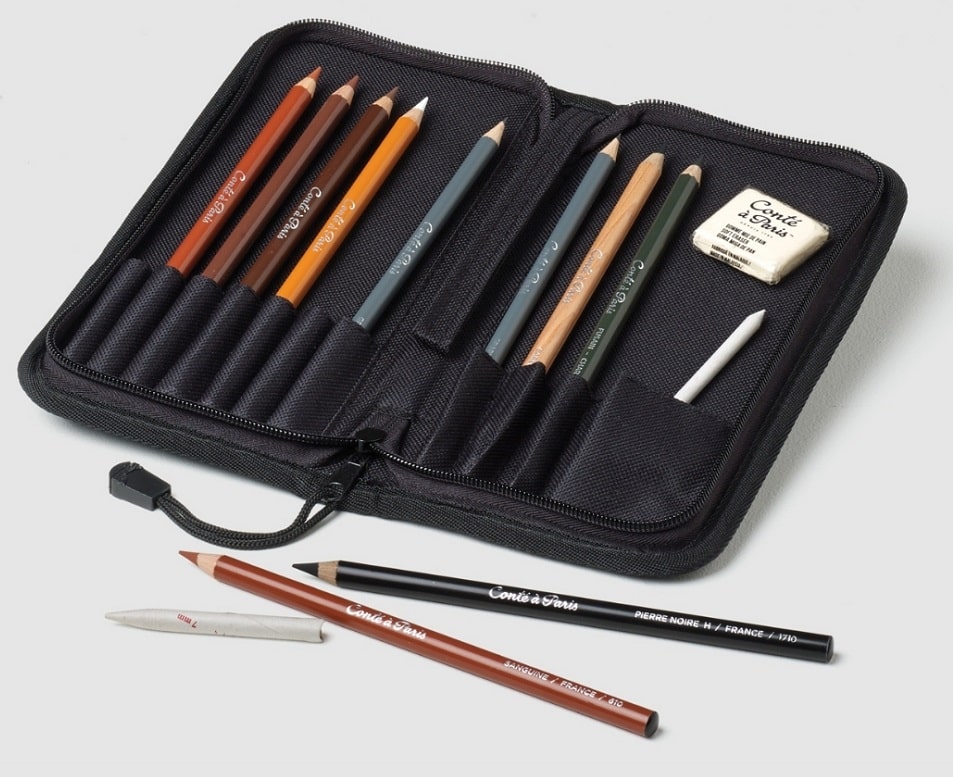 Selection of toned sketching pencils in a stylish zipped wallet.
