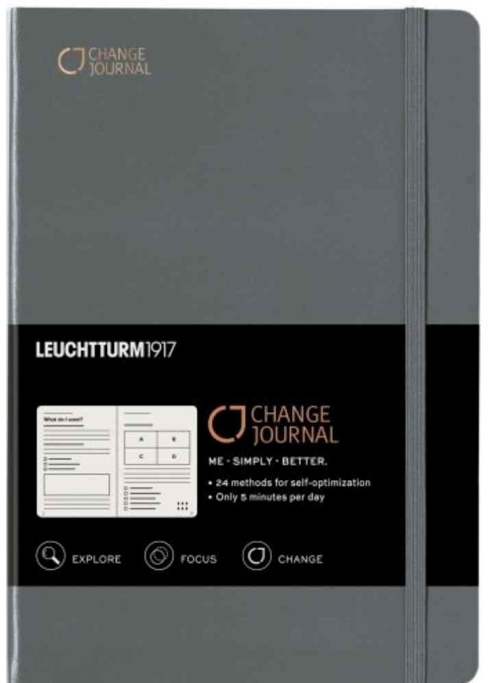 Optimize your life with the LEUCHTTURM1917 Change Journals with easy to understand and ready to use methods proven to help you make a more productive change. The Change Journal contains 24 effective and simple methods which can help you to improve your own productivity and organisation. Best practice from different sources, put together and condensed to the essentials by author Tim Jaudszims: to understand, try, document – a few minutes a day are enough. Featuring details such as a gusseted pocket in the inside back cover, 2 bookmarks and a sticker set for labelling and archiving.With 24 methods every single idea is familiar and approved. The way in which this idea has been prepared for the Change Journal – into a document which takes 2-3 minutes to read – makes it easy to incorporate into the daily routine.
