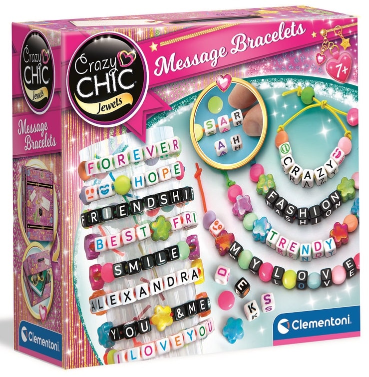 Bracelets in bright and lively colours, which you can write your name or favourite words or messages on, allowing full expression of creativity and unique style. This kit gives little girls the freedom to create their own favourite jewellery. With a good dose of manual skills, any little girl can create original pieces to wear with pride or swap with friends! A bracelet can seal a friendship or become a new trend, and nothing is more fun for little girls that showing off a new bracelet that fits their current mood. The container is ideal to store all of the different components in one place and easily find the items required each time you want to write a new word or choose different colours. The play set contains different alphabets: in black and white, with white letters on black background and coloured on a white background. The choice of colours of the components has been carefully selected based on current fashion trends, in order to inspire little girls. The pack transforms into a container to store creations and an accessory holder for unused beads, ensuring that none are lost and allowing creations to be made anywhere. This play set prompts little girls to experiment with different combinations of jewellery with creativity and imagination, also developing manual skills.