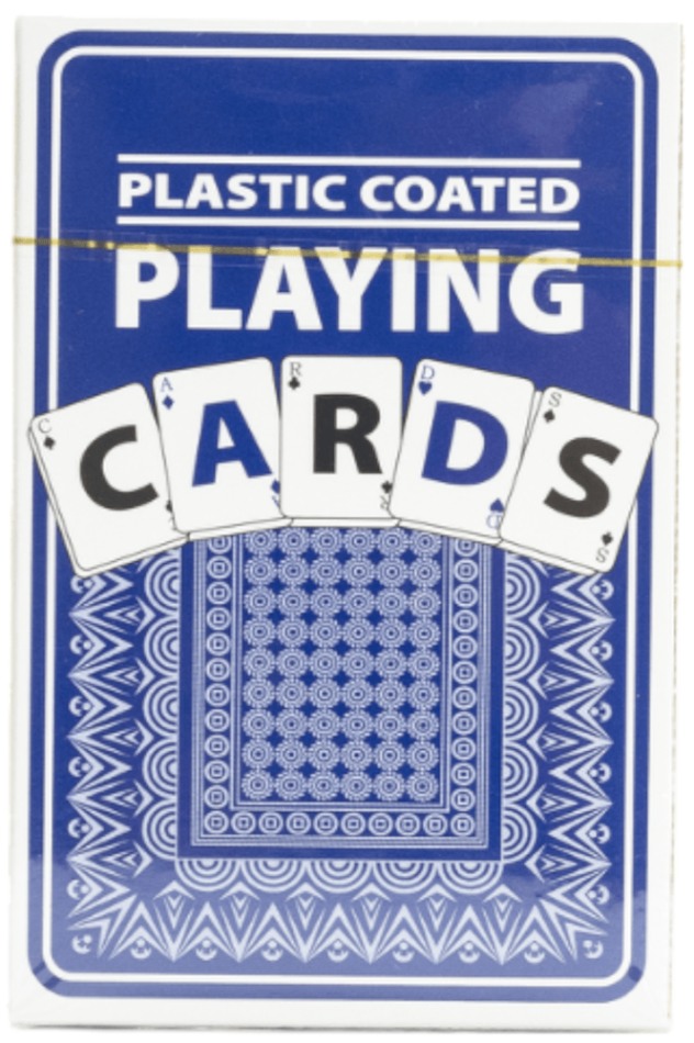 A classic deck of Plastic Coated Playing Cards in a bold blue design. Durable and smooth for easy shuffling, these cards are perfect for games night or a quick hand of solitaire. Standard size and design with a traditional patterned back.
