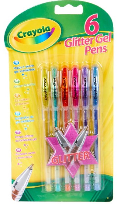 A fab mix of 6 Glitter Gel Pens, perfect for adding a bit of shimmer and sparkle to your drawings and lettering. Each gel pen has been designed to deliver a smooth even flow. Crayola's Glitter Gel Pens come in 6 glittering colours: gold, green, orange, pink, purple and blue.