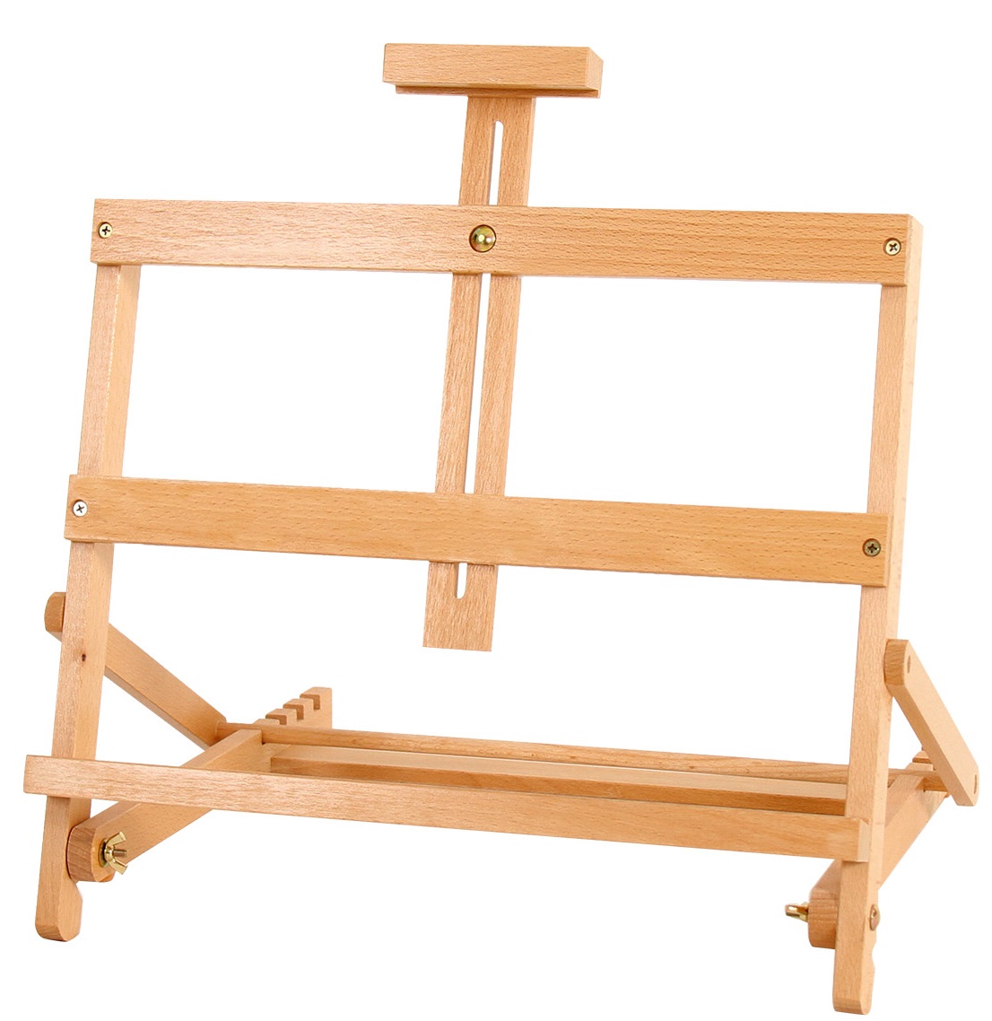Lightweight and portable desk easel. Folds flat for easy storage. Adjustable angle for preferred working position. Dimensions: 42cm wide x 58cm high x 35cm deep (16.5x22.8x13.8 inches). Folded dimensions: 42cm wide x 38cm high x 6cm deep(16.5x15x2.4 inchesCare: Avoid storing or placing easel directly in front of radiators, heaters, or fireplaces. Clean the surface of your easel by gently wiping with a lightly dampened cloth.To maintain easel&'s natural shine and woodgrain apply linseed oil with a soft cloth.