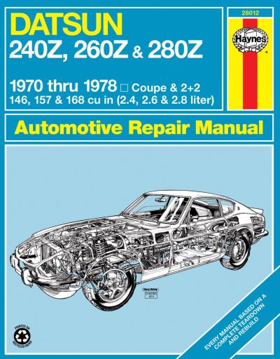 - With a Haynes Manual, you can do it yourself, from simple maintenance to full repairs. Every Manual is based on a complete stripdown. Our authors and technicians work out the best methods to do a job and present this with the home mechanic in mind. Our Manuals have clear instructions and hundreds of photographs that show each step. Whether you're a beginner or a competent mechanic, you can save money with Haynes., Each Manual includes:, Clear and easy to follow page layout, Full procedures written from hands-on experience, Easy-to-follow photos, Faultfinding information, How to make special tools, Colour wiring diagrams (where available).Specific Models Covered:Datsun Z-car covering 240Z (1970 thru 1973), 260Z (1974 thru 1975) and 280Z (1976 thru 1978)
