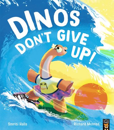 - A fantastic rhyming story by Smriti Halls (I'm Sticking With You and Rain Before Rainbows), with dynamic illustrations from Richard Merritt (The Dinosaur Department Store), about discovering grit and building determination. Diplodocus Dinah is BRILLIANT at everything. There's nothing she can't do and no competition she can't win! But what happens when the Surfing Contest comes to Dino Town and Dinah discovers that surfing is something she just can't dino-do! For the first time ever Dinah doesn't come first. Will she be distraught? Or will she discover that there's more to having fun than winning? An encouraging and inspiring story, packed with hidden humour, that's perfect for fans of Giles Andreae's Giraffes Can't Dance. PRAISE FOR DINOS DON'T GIVE UP!: "Halls' gentle rhyming text makes sure to celebrate Dinah for all her wonderful qualities, and remind us that all we need when the going gets tough is a hug and a bit of encouragement . . . Richard Merritt's bright, eye-catching illustrations make a jolly and sweet, summery book with a kind message about resilience and caring." - BookTrust