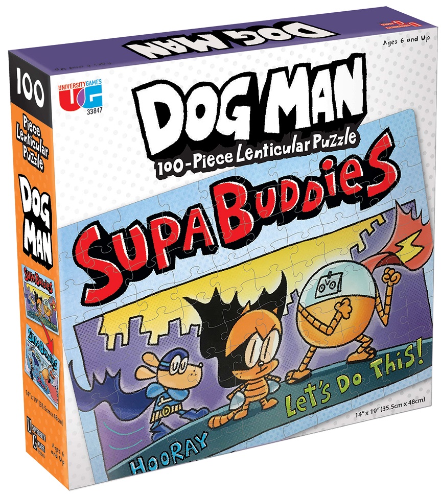 Take a bite out of crime one piece at a time with the Dog Man 100-piece jigsaw puzzles! Great for kids and families, build a puzzle with your favorite animated hero.