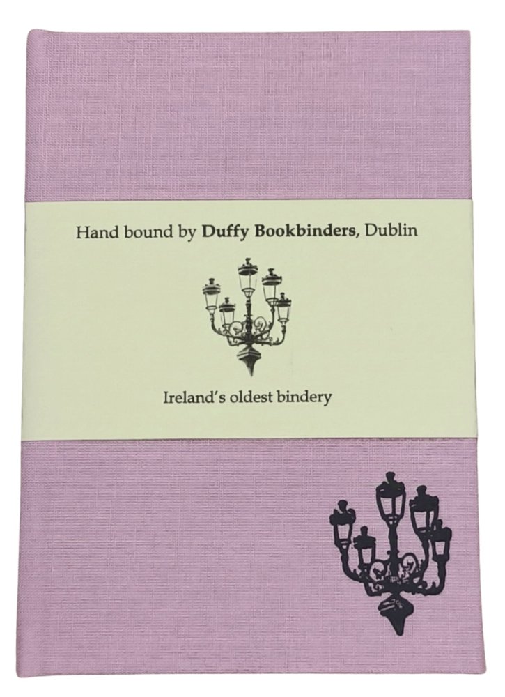 Our hand bound notebooks are known for their quality and durability, and are well regarded for many uses, be it writing, sketching or drawing. They are bound using high quality linen finish book cloths. They are blank unruled, 160gm ivory paper and feature a black foiled image of The Five Lamps. This notebook consists of 160gm unruled ivory paper and bound using a high quality linen finish book cloth. It features a black foiling of the Five Lamps, a famous Dublin landmark.