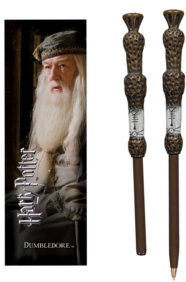 Dumbledore's infamous wand offered as a pen, complete with a bookmark featuring Albus Dumbledore himself. The Perfect gift for Harry Potter fans.