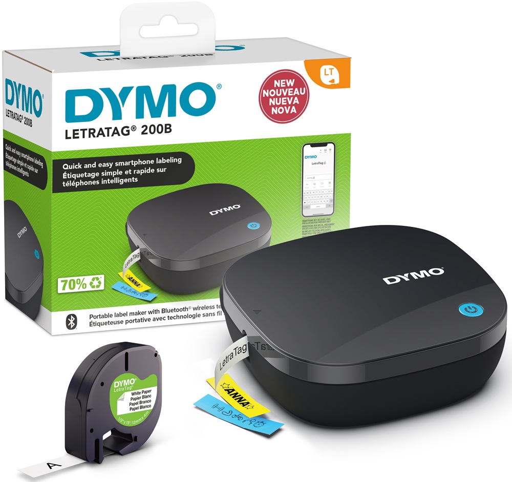 • Includes: DYMO LetraTag 200B Bluetooth Label Maker with 1 white paper label tape; Requires 4 AA batteries (not included)