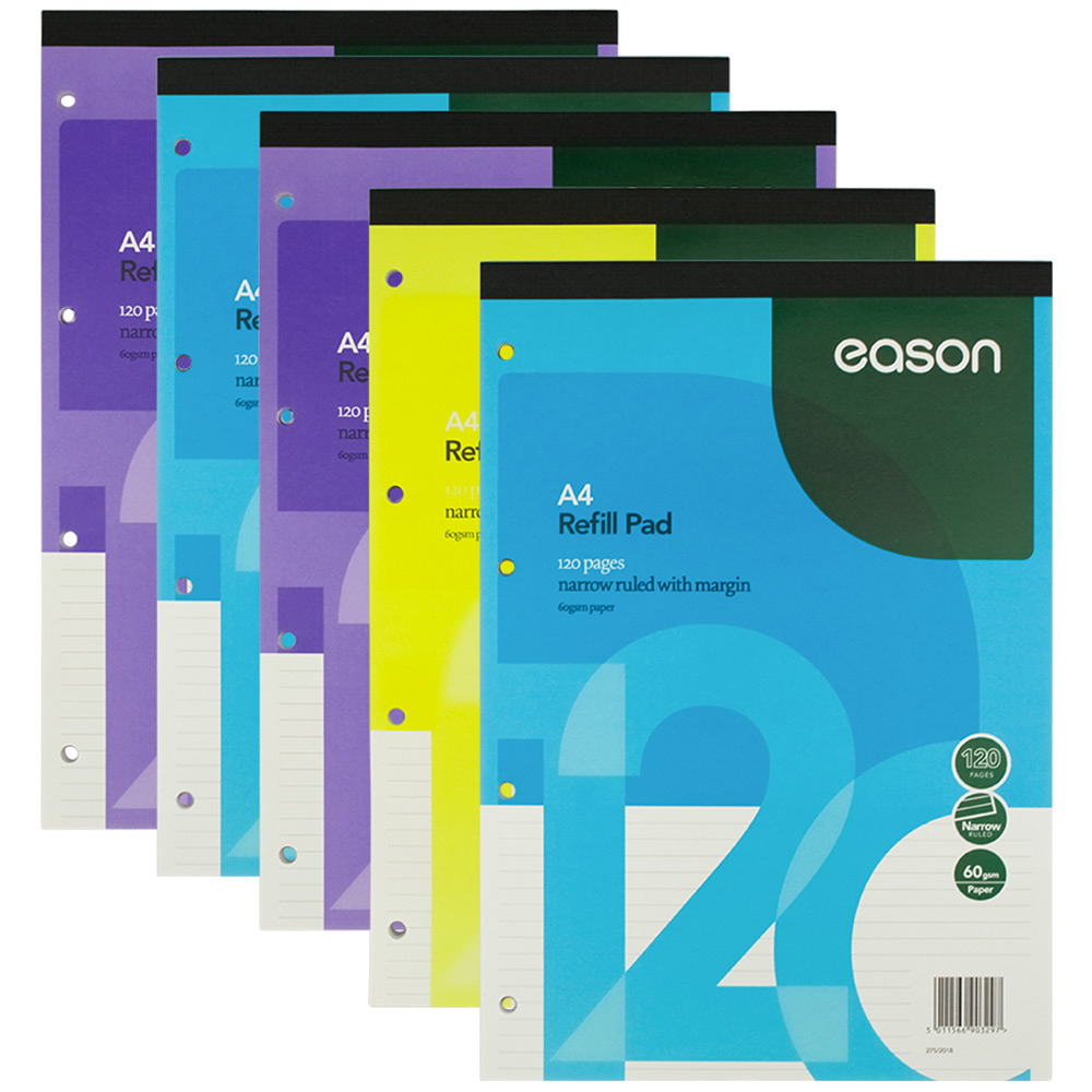 Eason A4 Refill Pad 5 Pack Assorted 120 Pages