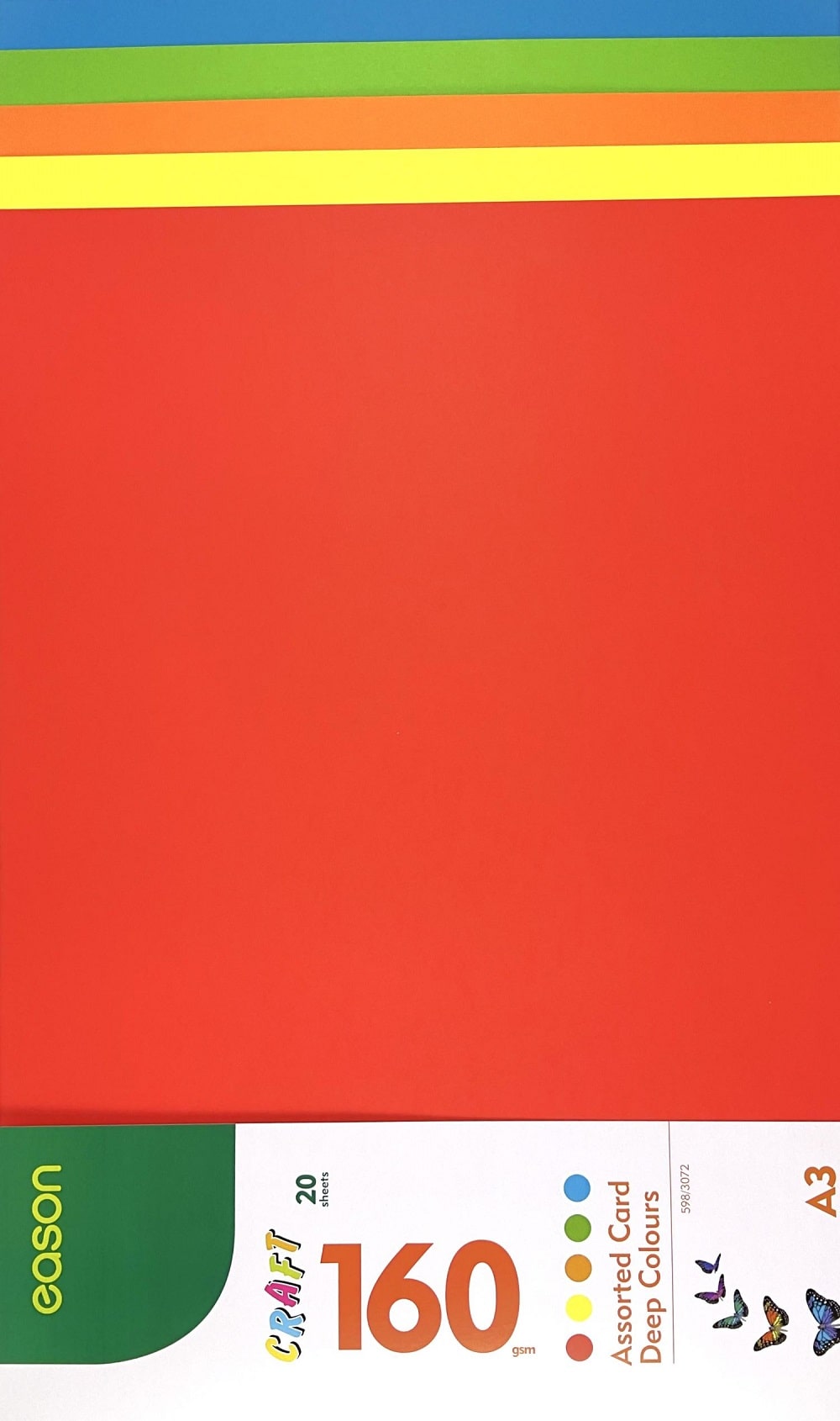 Eason A3 160gsm Card Asst Deep Colours Pack of 20
