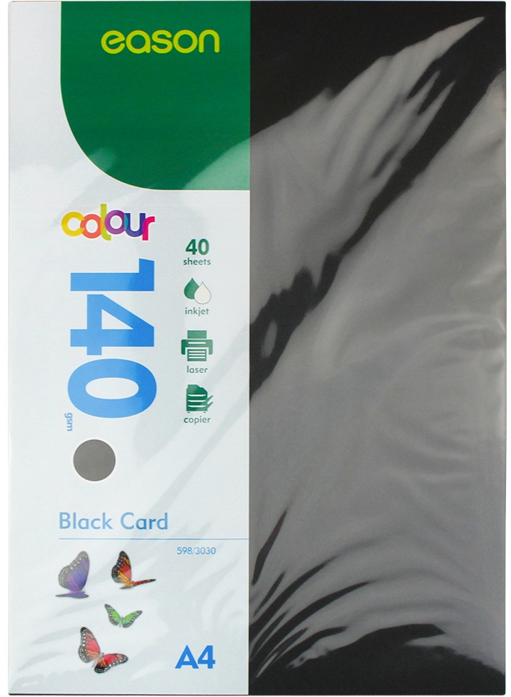 Smooth Black A4 Card 140gsm. True black card suitable for Arts & Craft at home, creche, school and club.