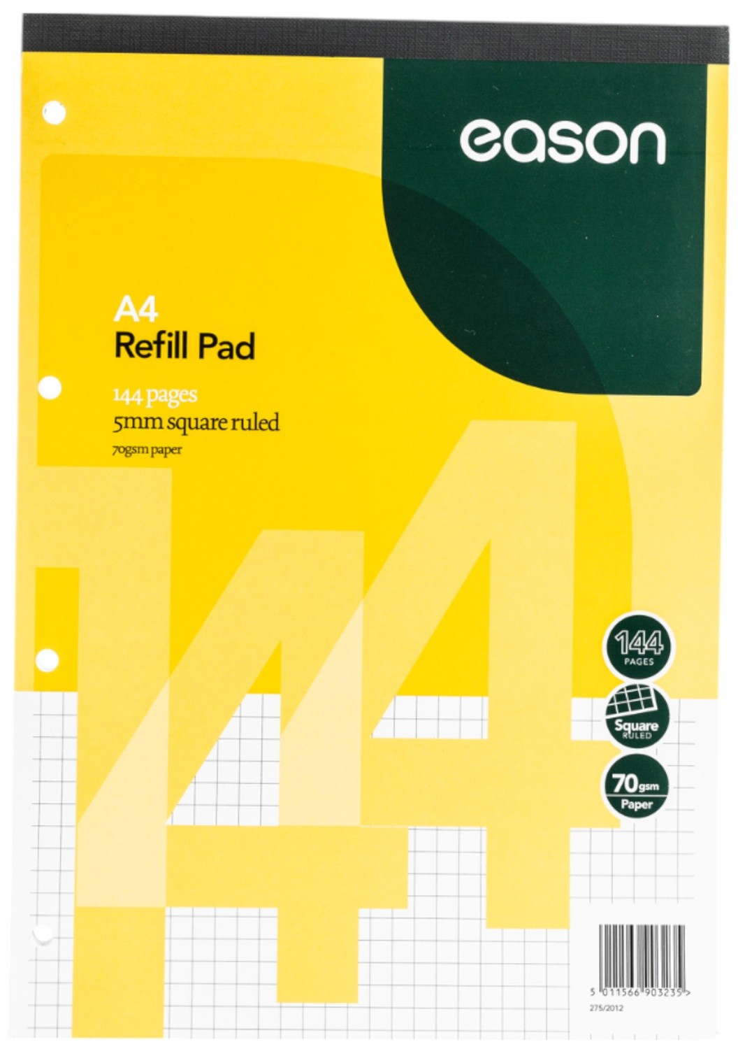 Eason A4 Refill Pad 5mm Square - 144 Pages 70gsm