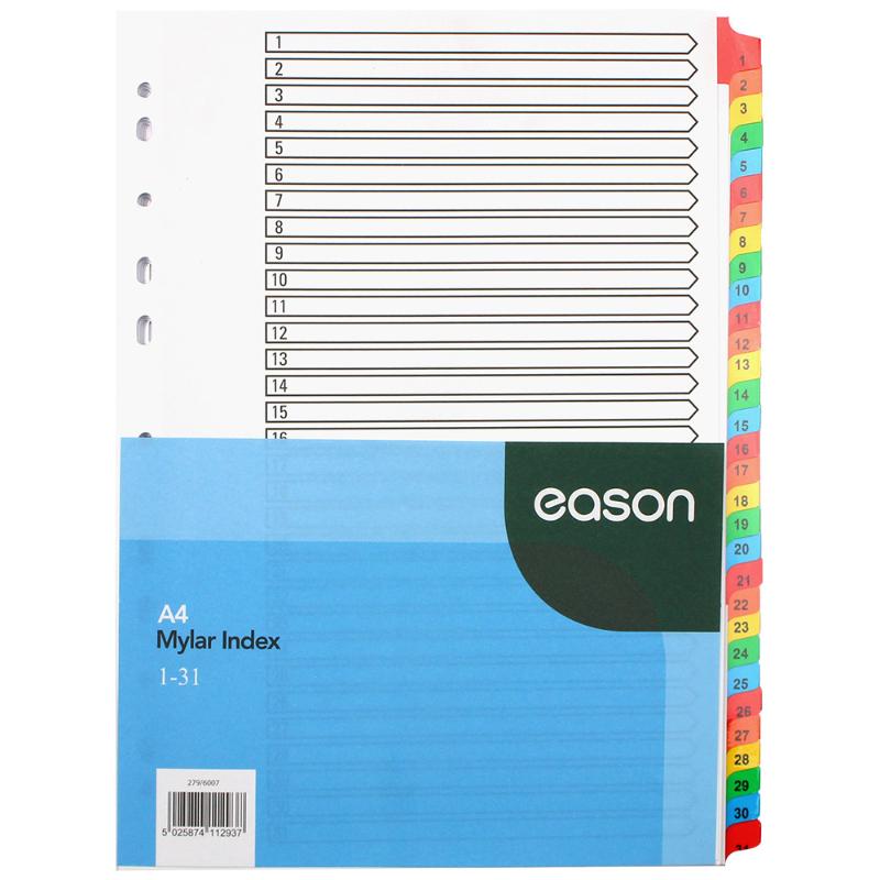 Eason 1-31 Mylar Index A4 Coloured
