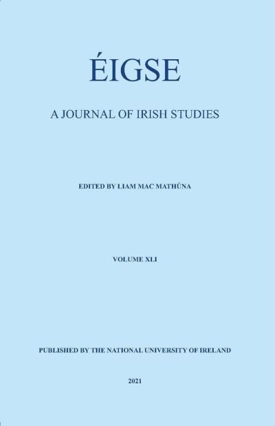 - Éigse is devoted to the cultivation of a wide range of research on the Irish language and its literature, embracing both textual and contextual studies. Volume 41 contains articles ranging from an edition of a medieval Irish text to modern regional dialects. Other contributions in both Irish and English, from established and emerging scholars in Ireland and abroad, include the fields of place-names, keening, lexicography, the revival movement, and the contents of a recently identified Gaelic manuscript in Massachusetts. This volume also contains substantial review articles on Amrae Coluimb Chille, the lives of the saints, and the history of theatre in Irish, as well as a broad range of book reviews on many aspects of Irish studies.