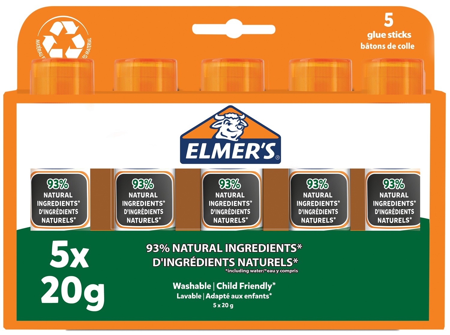 Elmer's Pure Glue Sticks are made from 93% natural ingredients and the cardboard packaging is plastic-free, inspiring everyone to believe in green