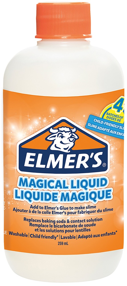 Elmer’s Magical Liquid activator solution is an all-in-one formulation that transforms Elmer’s clear, glitter and white glues into the exciting slime! Child friendly and washable, Simply mix the Magical Liquid with glue for hours of fun. *Not for children under 3 years. Adult supervision required. Thoroughly wash your hands before and after making and playing with slime.