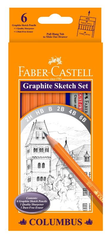 This pencil is made from the highest quality Californian Cedar wood and German leads. The range has the right pencils for every task. 6B to B are for artwork, the soft leads are perfect for sketching and shading. HB through 5H are specially made for writing, drafting and fine lines. Breakage is prevented by using a special SV. The varnish used is water based and environmentally friendly. They are easy to sharpen with any quality sharpener. Graphite sketch set with 6 pencils (2H, HB, B, 2B, 4B 6B) quality sharpener and a dust free eraser.