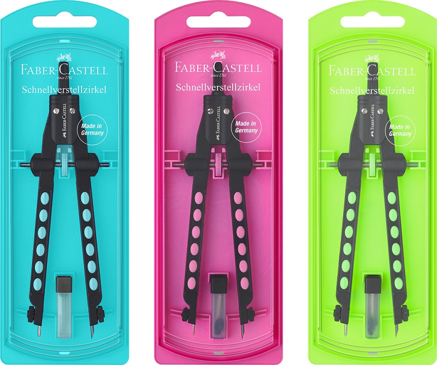 Faber Castell Fashion Compass Neon Quick-set compass with a 3D design; Made in Germany