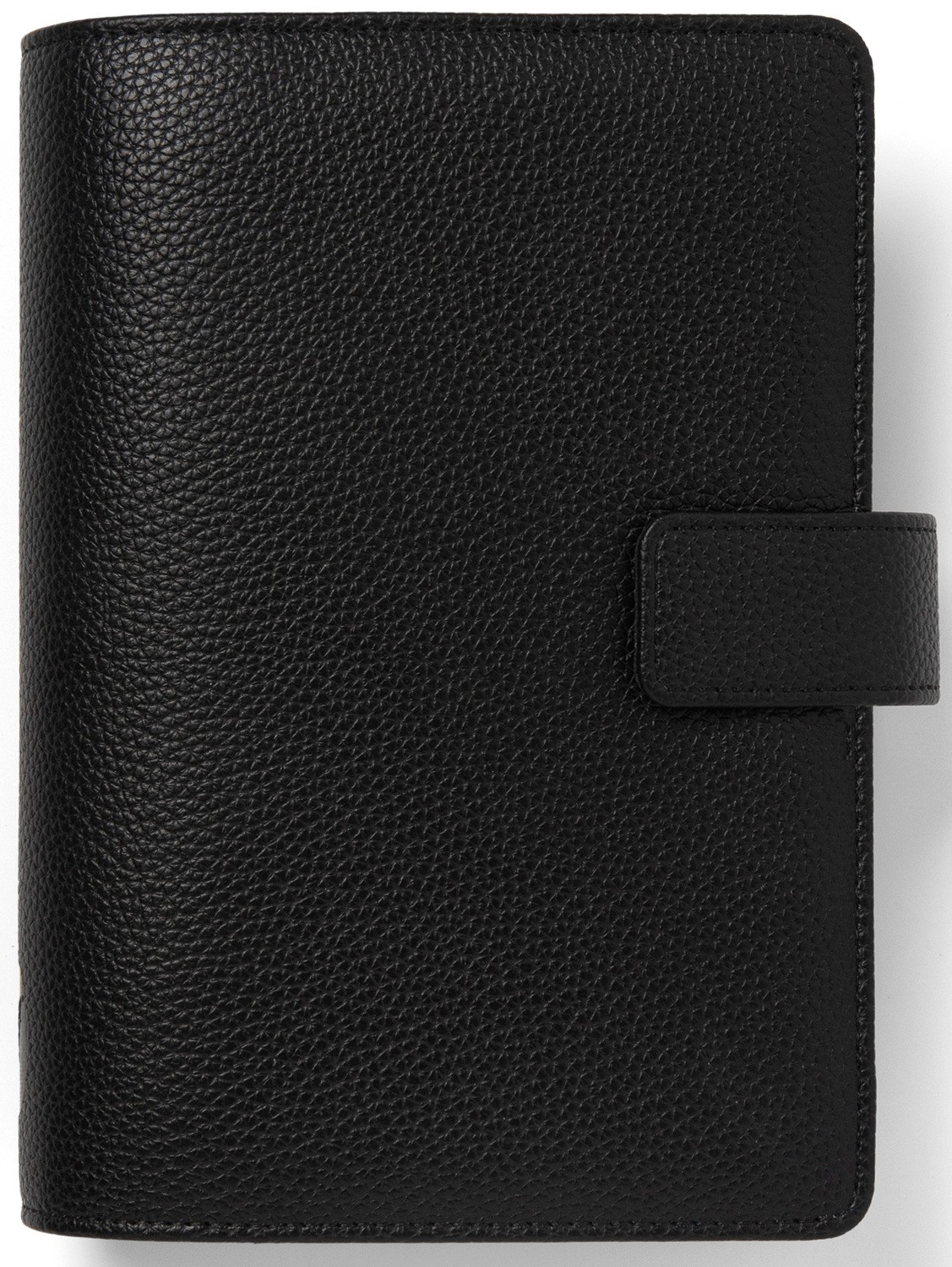 - The Filofax Camden Personal organiser has been created with sustainability and lifestyle organisation in mind. Crafted from vegan grain leather look (100% post-consumer recycled plastic) and featuring 100% recycled, fountain pen friendly paper, this collection offers a stylish yet conscious choice. The innovative feature of Charcoal removable rings redefines flexibility and functionality, making it easier than ever to customise any planning experience. The Camden contains an Undated Refill, on 80gsm fountain pen friendly recycled paper. Ring mechanism size is 23mm and the paper size is 95mm x 171mm.