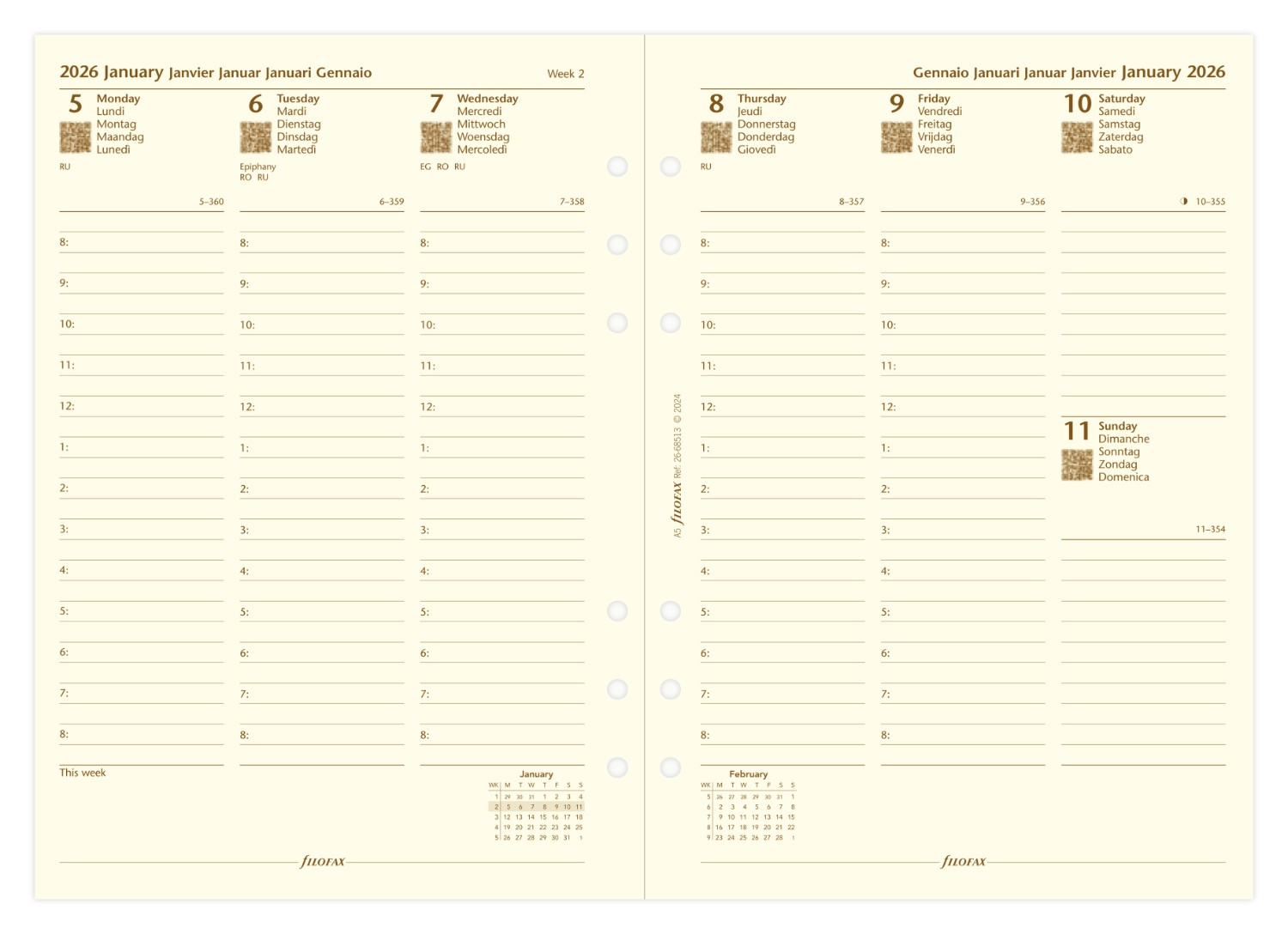 Filofax A5 Week on two pages Refill Eng/Fre/Ger/Ita column format 2026