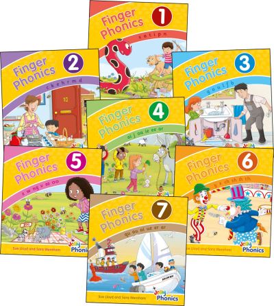 - The Finger Phonics books introduce young children to all of the letter sounds, not just the alphabet. The teaching in these books is multisensory. Each letter sound is introduced with an action and a large cut-out letter, which helps little fingers to feel the correct formation. Fun activities at the end of each book help children to use their new letter- sound knowledge and begin to develop their reading and writing skills. These refreshed editions are the same as previous editions in terms of number of pages, pagination and core content, but have been enhanced with: New cover designs, colour-coded to match each group of letter sounds across other Jolly Phonics resources Fresh and new full-page illustrations for each page New-style, easy-to-follow letter formation guides Information panels showing how to use each page Additional items within each picture to tie in with the vocabulary taught in Jolly English Updated activities at the end of each book to align with other Jolly Phonics resources Also available individually.