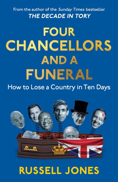 - The sequel nobody wants. After a decade of the Tories, could it get any worse? Spoiler - it does. Towards the end of 2021, Britain had been frogmarched into an escalating series of surreal calamities. Brexit was a disaster, the NHS was in crisis, the government was bathed head-to-toe in impropriety, senior Tories were still acting as though the public purse was their personal feed-trough, and the air crackled with anger about PartyGate. All of which led to an inglorious start to 2022: the year the UK saw two monarchs, three prime ministers and four chancellors. From Boris Johnson, who trashed our international reputation and handed billions to his mates so they could ineptly fight a pandemic while he stayed at home, shagging and acting as a super-spreader; to Liz Truss, a drive-by prime minister who managed to kill off the queen and crash the economy in a single week. And now we're led by Rishi Sunak, who doesn't know how to use a credit card, drives a pretend car, and grinningly promises even more poverty. Four Chancellors and a Funeral delivers more of Russell Jones's signature scathing wit, combining a detailed historical record of 2021 and 2022, with acerbic commentary, all of it leavened by jokes at the seemingly endless maelstrom of failures, nincompoops and hypocrisies. 'A magnificent tome, full of acerbic wit and groaning with disaster. This book is the only Brexit benefit I can think of. Send it to anyone thinking of voting Tory' Jemma Forte, broadcaster and writer 'With scathing wit and insight, Russell Jones delivers the hilarious and terrifying no-holds-barred roast we've all been waiting for' Peter Stefanovic, journalist and broadcaster 'As ever, Russell's writing is just the job if you're in need of a laugh AND your blood pressure is dangerously low . . .' Mitch Benn, comedian and writer